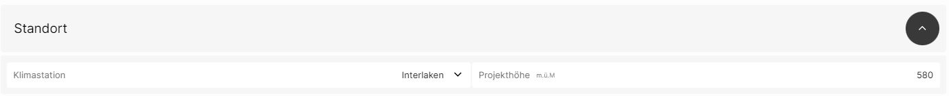 Zur Abschätzung der Betriebsenergie wähle die Klimastation aus, welche am nächsten bei deinen Gebäudestandort liegt. Weiter gibst du die Projekthöhe in m.ü.M ein.